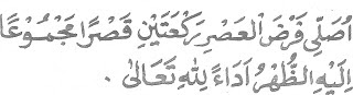 1. اُصَلِّى فَرْضَ العَصْرِ اَرْبَعَ رَكَعَاتٍ جَمْعًا تَقْدِيْمًا مَعَ الظُهْرِ فَرْضًا للهِ تَعَالى
